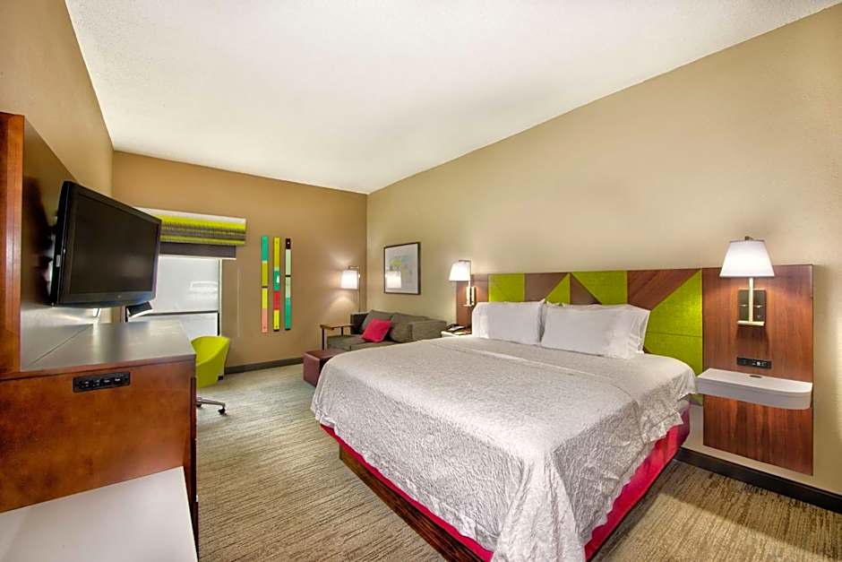 Features a seating area with a sofa bed.